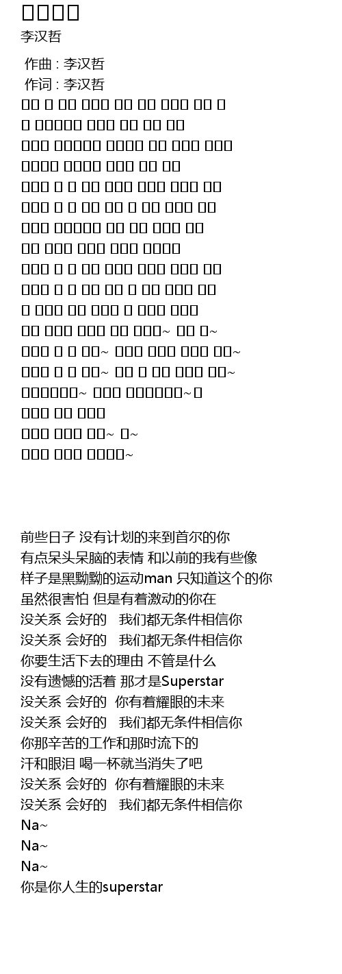 | [02:35.320] | 너만의 인생의 슈퍼스타~ |