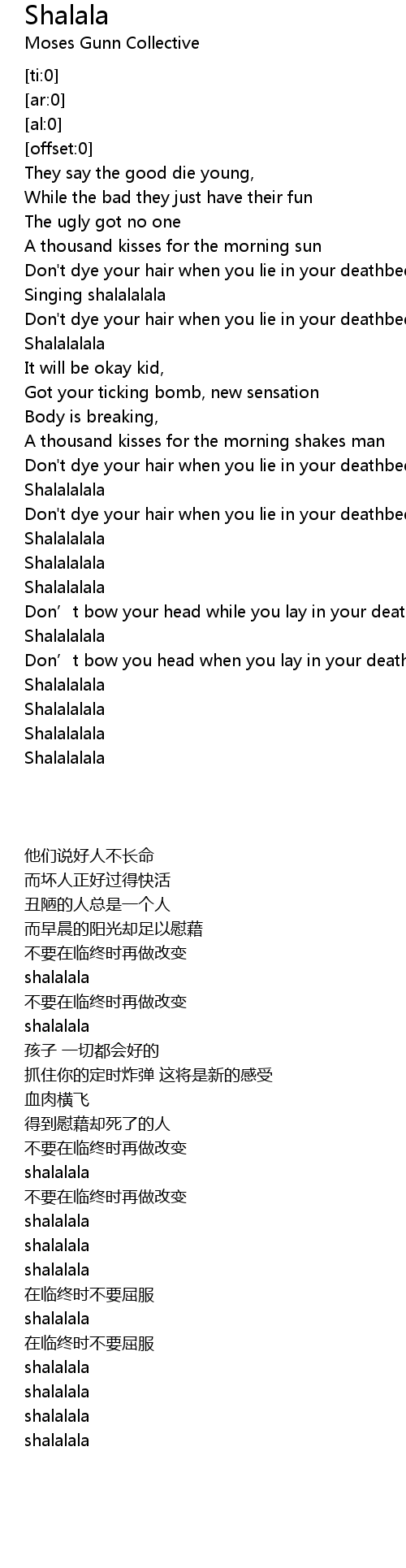 | [00:48.88] | Don' t dye your hair when you lie in your deathbed |
