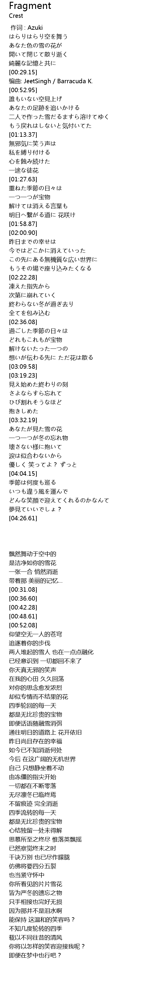 | 歌曲 | Fragment |