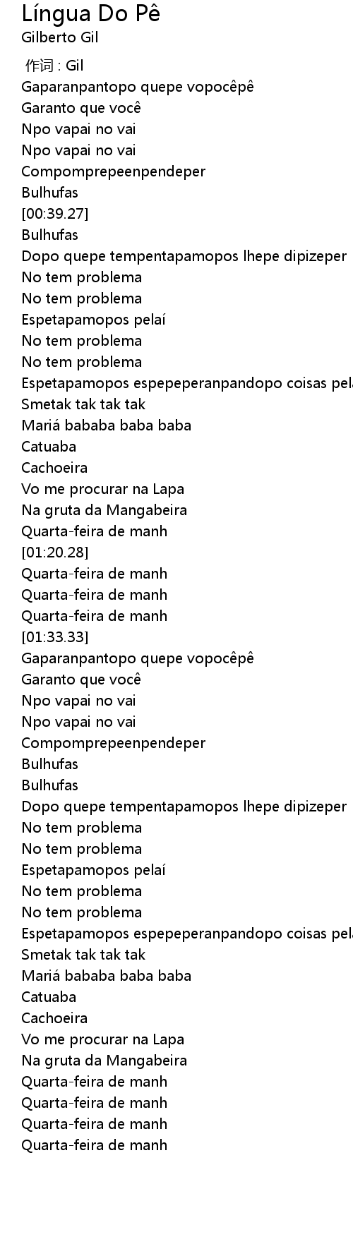 | [02:33.04] | Espetapamopos espepeperanpandopo coisas pela ai |