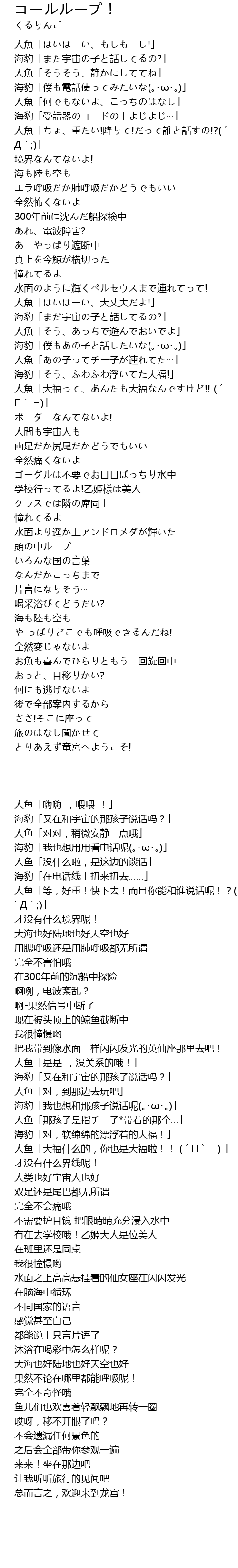 | [00:26.14] | 人魚「はいはーい、もしもーし!」 |
