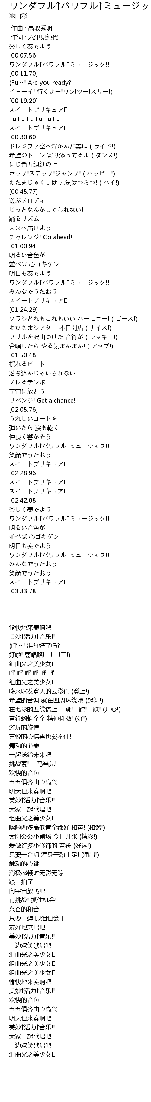 | [00:07.57] | ワンダフル↑パワフル↑ミュージック!! |