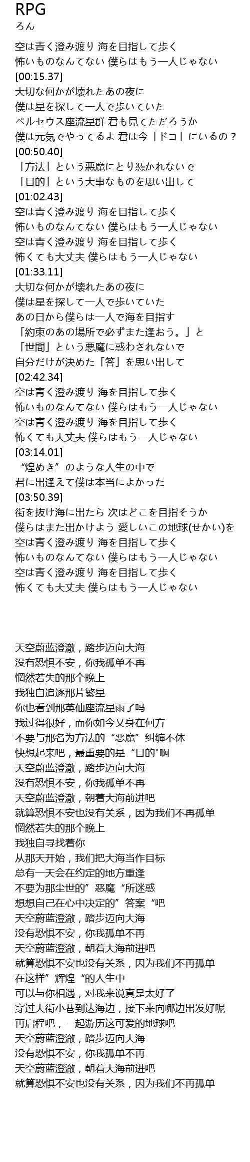 | [03:06.18] | 怖くても大丈夫 僕らはもう一人じゃない |
