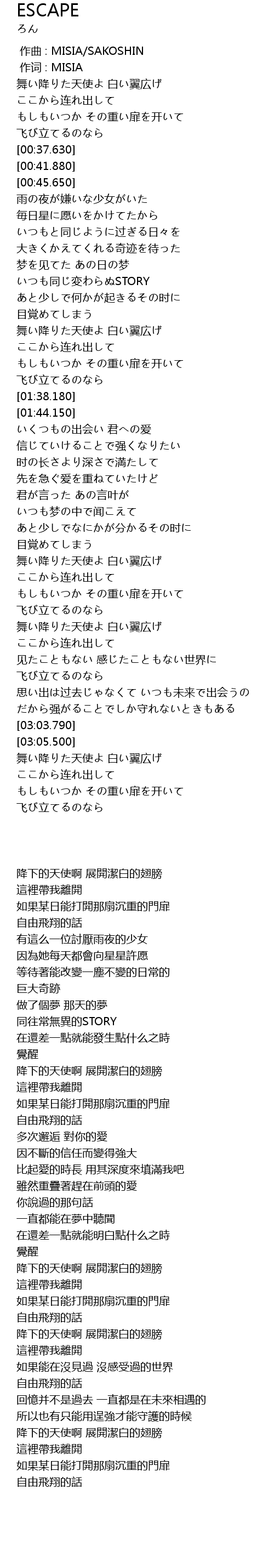 | [02:38.690] | 降下的天使啊 展開潔白的翅膀 |