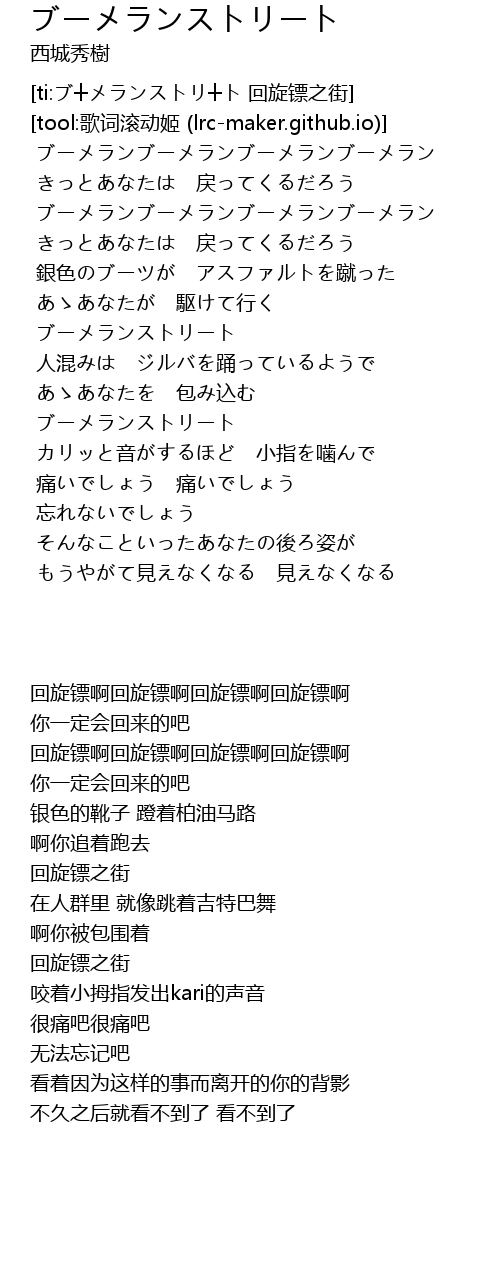 | [ti:ブ┼メランストリ┼ト 回旋镖之街] | |