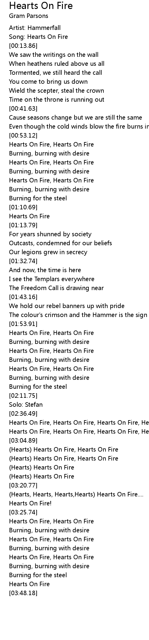 Song: Hearts On Fire |