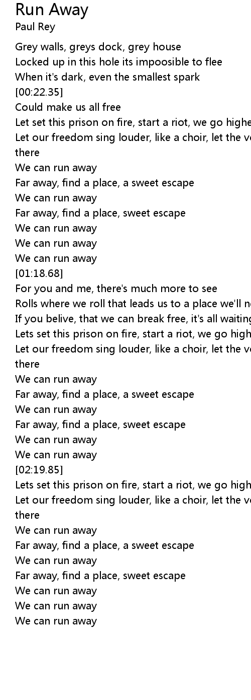 Lets set this prison on fire, start a riot, we go higher all the way |