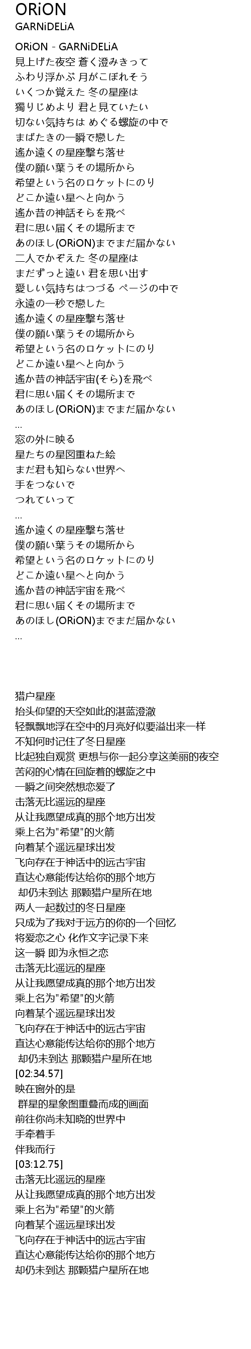 | [00:00.00] | ORiON GARNiDELiA |