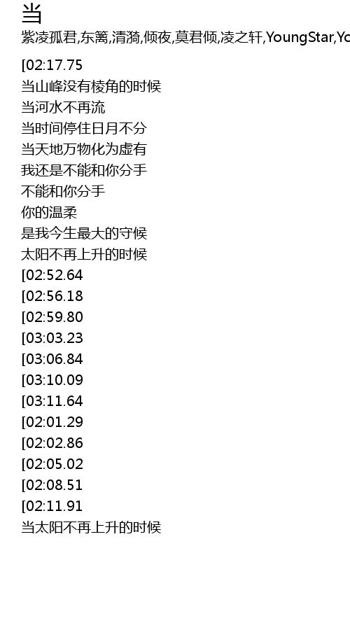 | [02:48.98] | dāng tài yáng bù zài shàng shēng de shí hòu |