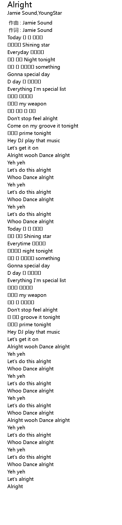| [02:55.38] | Alright wooh Dance alright |