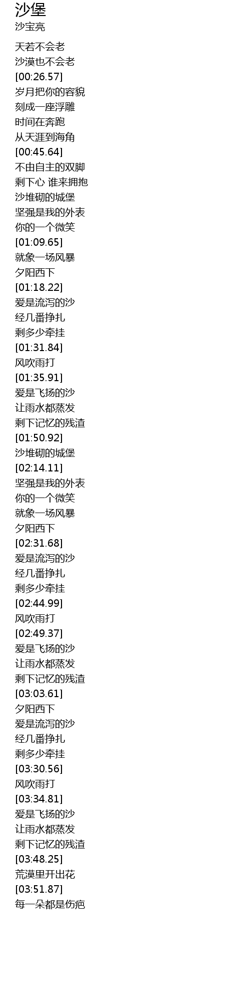 | [03:18.56] | 爱是流泻的沙 |