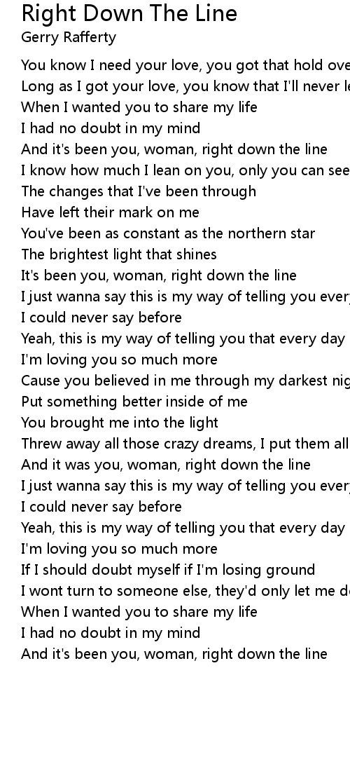 It's been you, woman, right down the line |