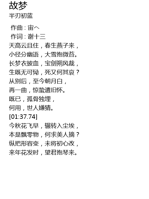 | [00:37.67] | tiān gāo yún qiě zhù, chūn shēng yàn zi lái, |