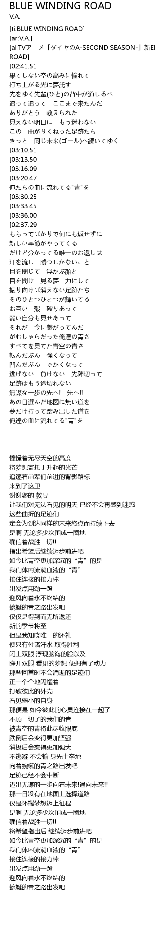 | [01:22.21][02:37.29][03:39.27] | BLUEWINDINGROAD xíng |