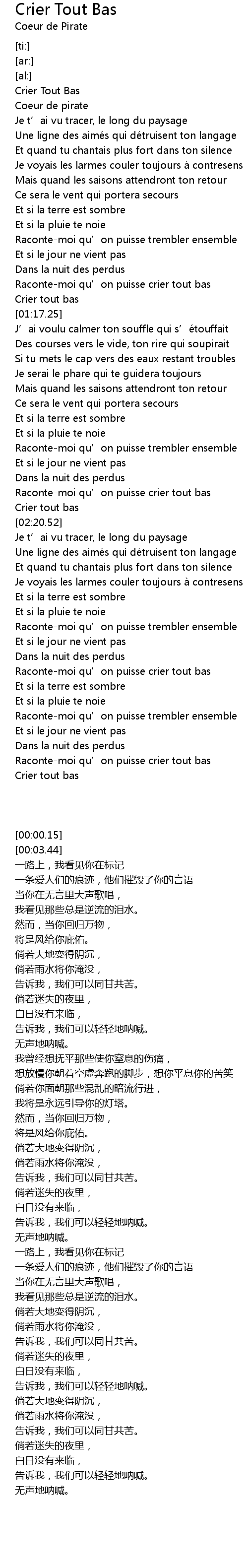 | [00:00.15] | Crier Tout Bas |