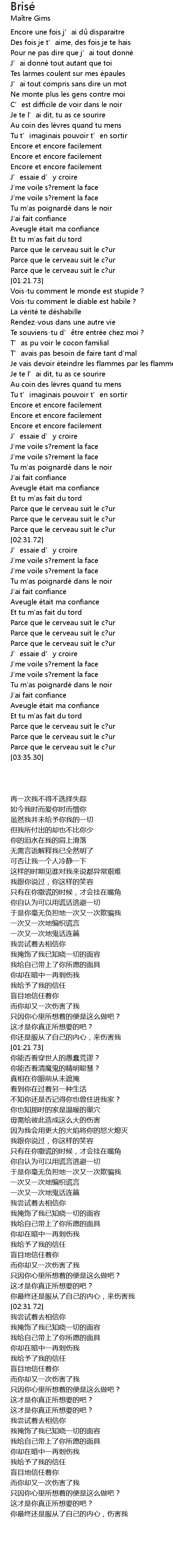 | 歌曲 | Brisé |