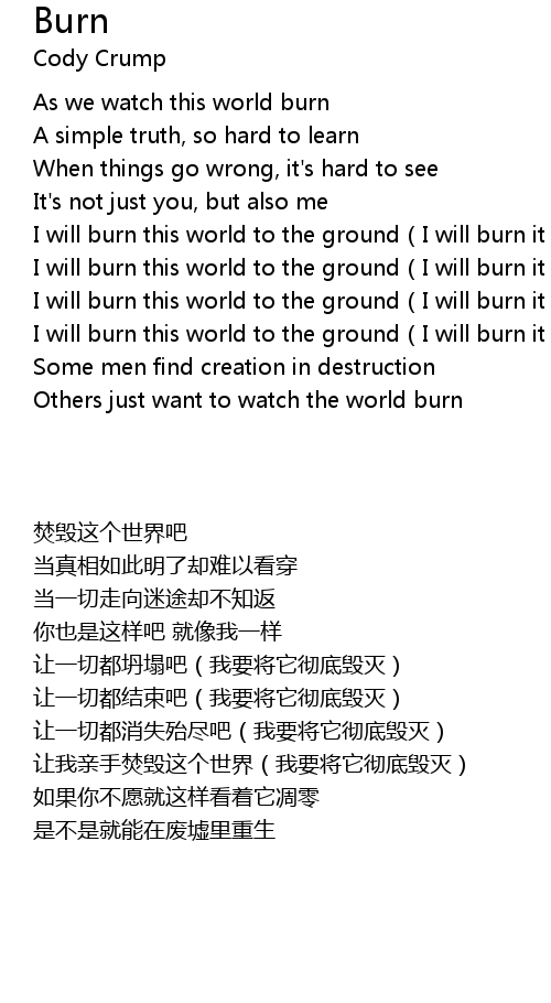 | [00:56.60] | I will burn this world to the ground(I will burn it all down) |