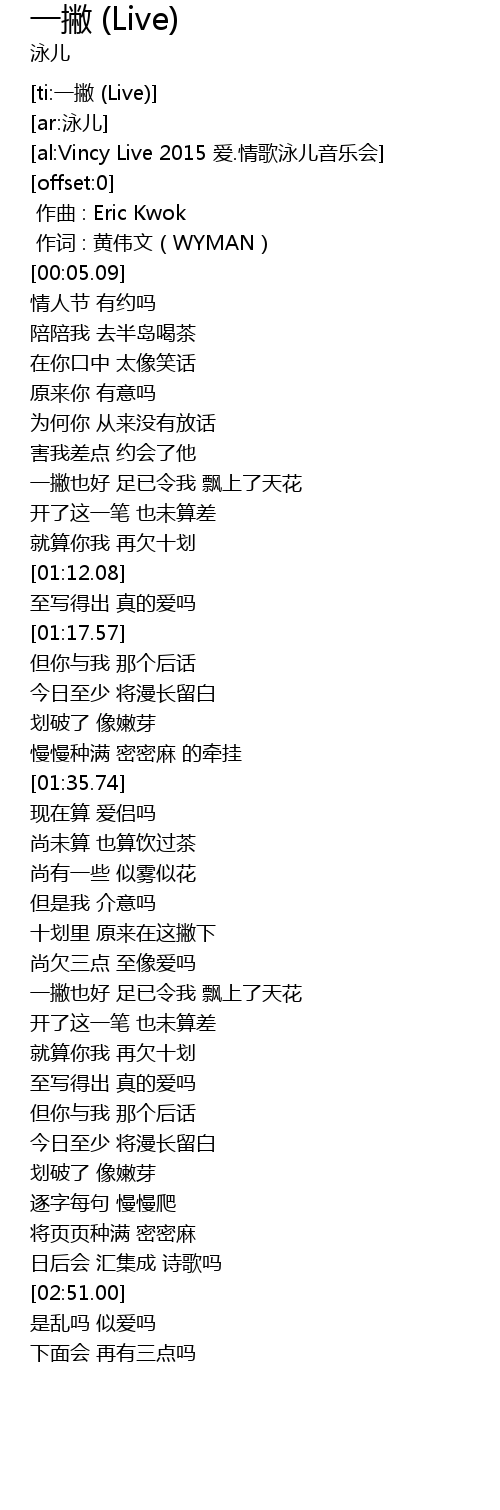 | [al:Vincy Live 2015 爱.情歌泳儿音乐会] | |