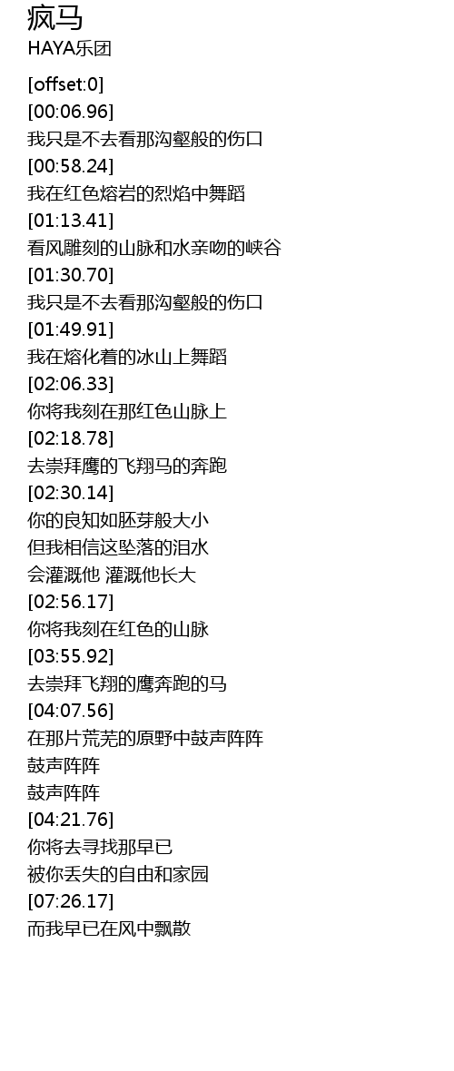 | [02:20.10] | 去崇拜鹰的飞翔马的奔跑 |
