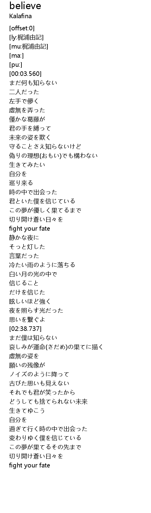 | [02:12.667] | 信じること |