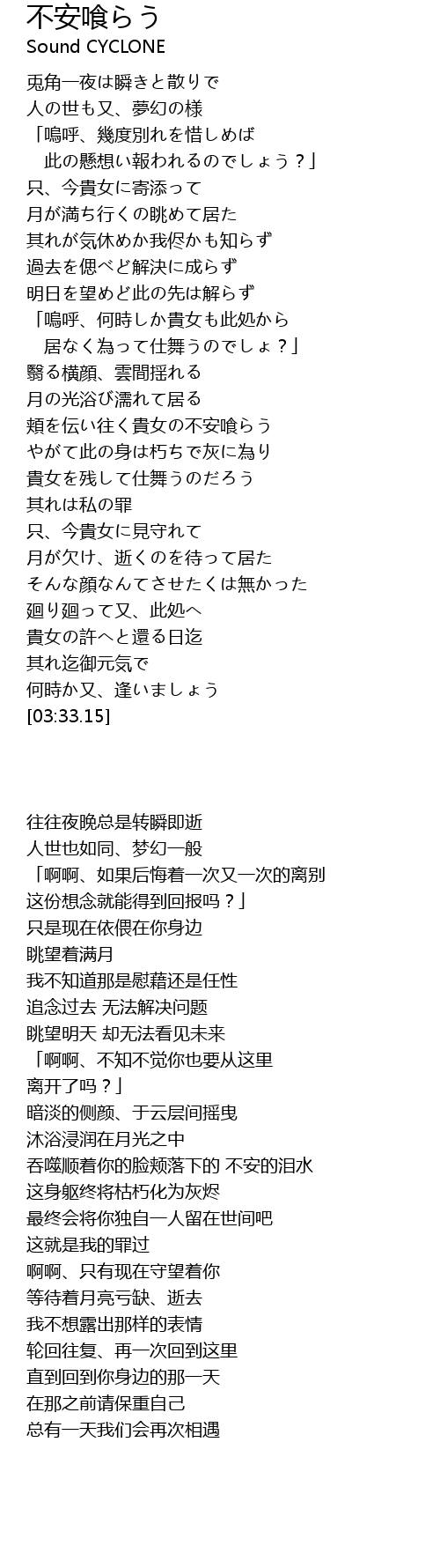 | [00:33.30] | 「嗚呼、幾度別れを惜しめば |