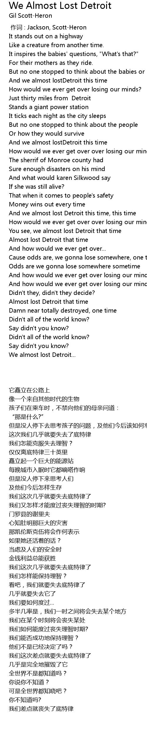 | 歌曲 | We Almost Lost Detroit |