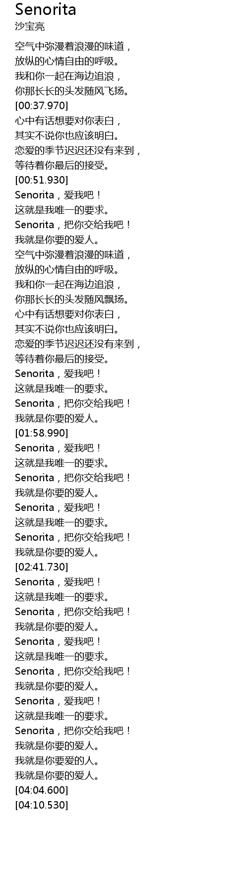 | [03:38.940] | Senorita,爱我吧! |