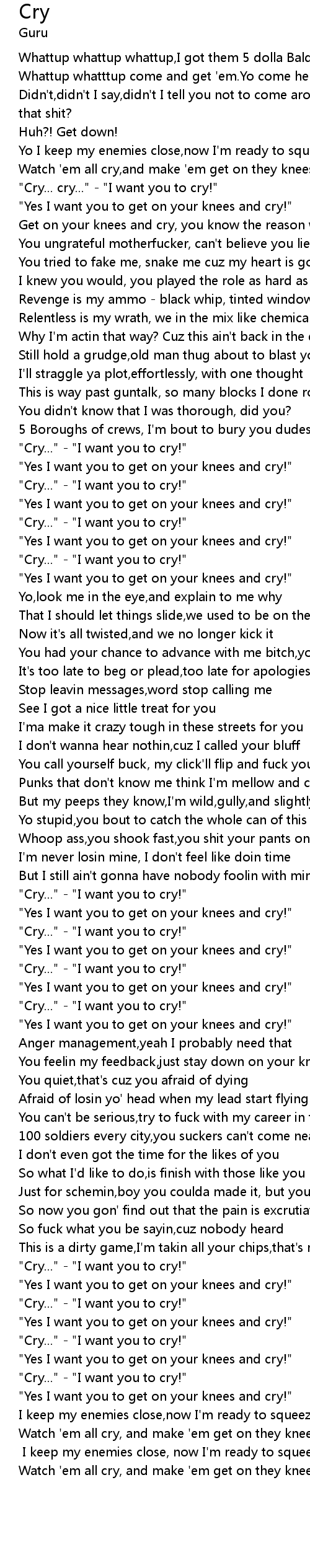 "Cry... cry..." - "I want you to cry!" |