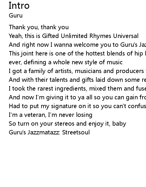 Yeah, this is Gifted Unlimited Rhymes Universal