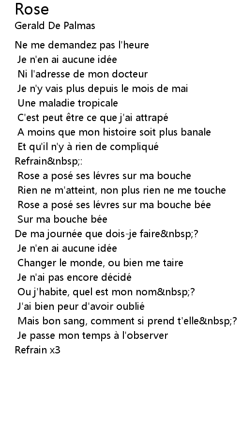 | Rose a posé ses lé vres sur ma bouche bé e | |