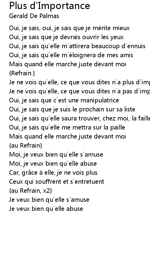 | Je ne vois qu elle, ce que vous dites n a plus d importance x2 | |
