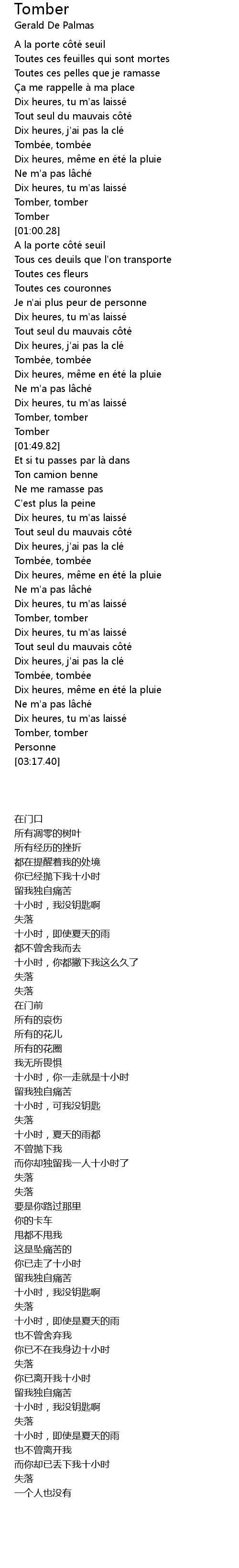 | [00:41.44] | Dix heures, j' ai pas la cle |