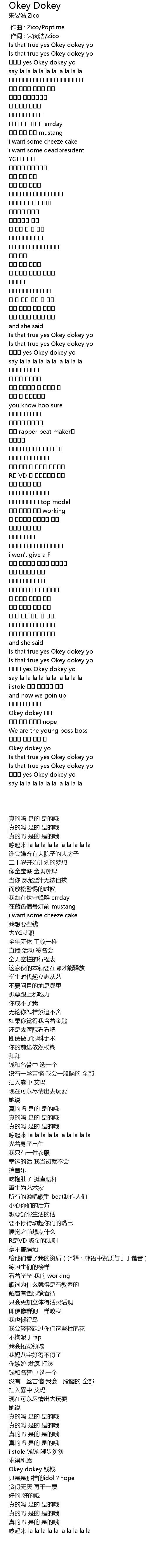 | [00:01.00] | 作词 : 宋闵浩/Zico |