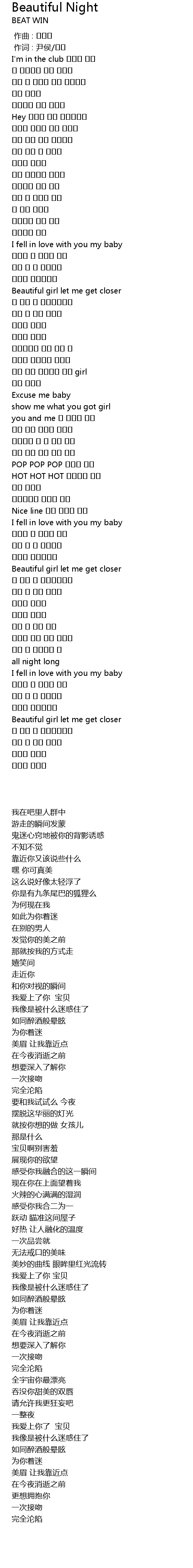 | 歌曲 | Beautiful Night |