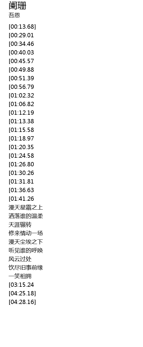 | [03:57.70][01:36.63] | 满目阑珊 |