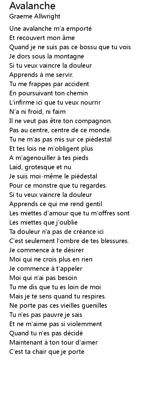 | Une avalanche m' a emporte | |