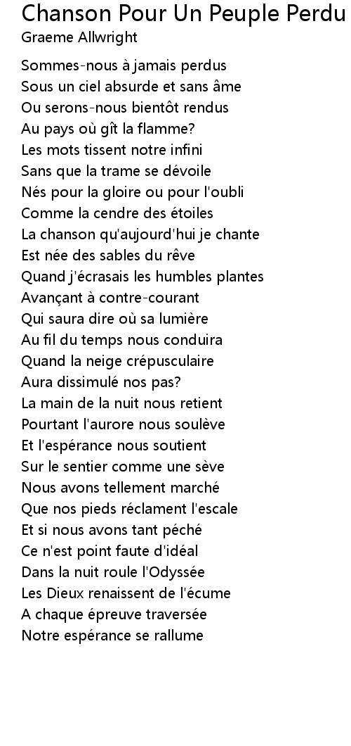 | 歌曲 | Chanson Pour Un Peuple Perdu |