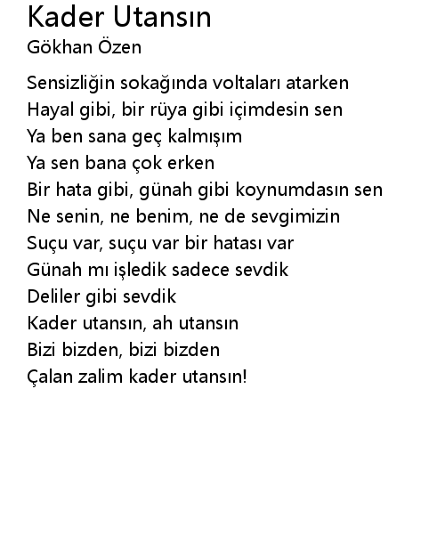 | 歌曲 | Kader Utansın |