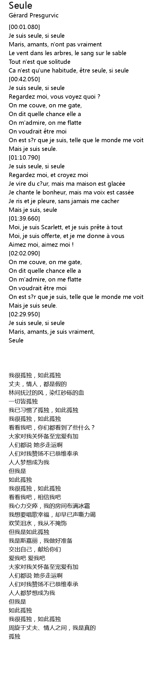 | [00:31.270] | Ca n' est qu' une habitude, tre seule, si seule |