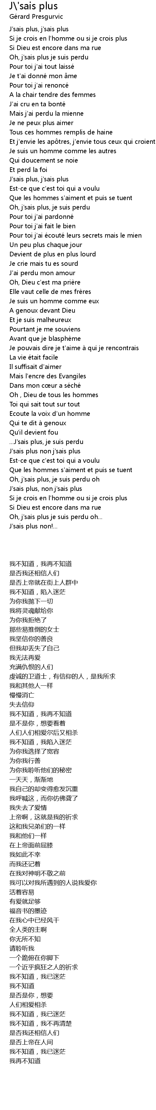| 歌曲 | J\'sais plus |