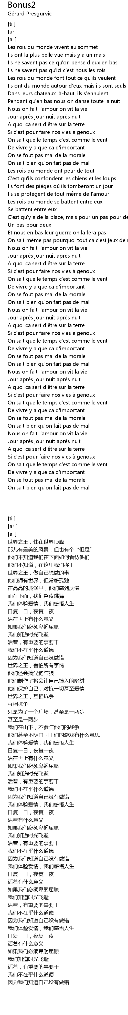 | [01:36.37] | On sait m me pas pourquoi tout ca c' est jeux de rois |
