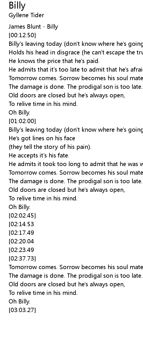 Tomorrow comes. Sorrow becomes his soul mate. |