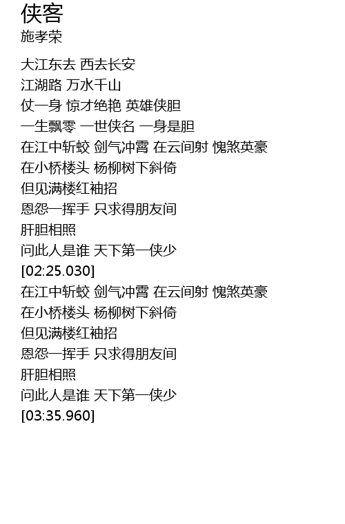 | [03:22.770] | 问此人是谁 天下第一侠少 |