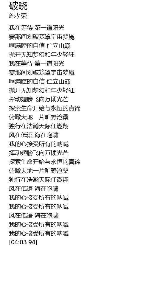 | [03:45.54] | 我的心接受所有的呐喊 |