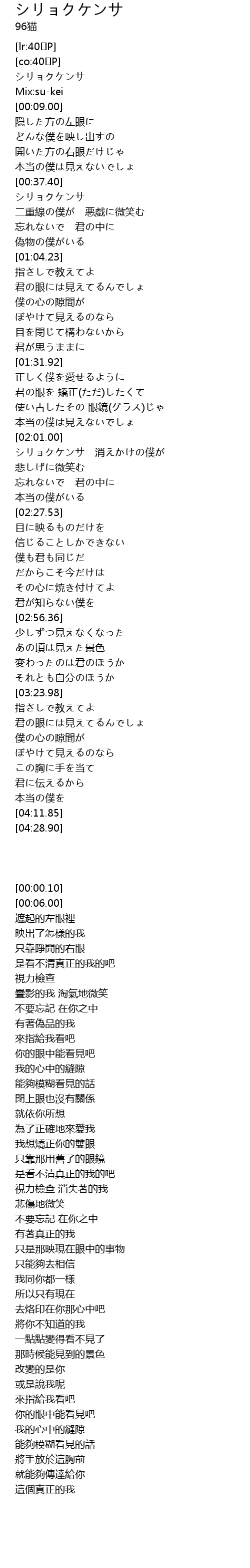 | [02:01.08] | 視力檢查 消失著的我 |