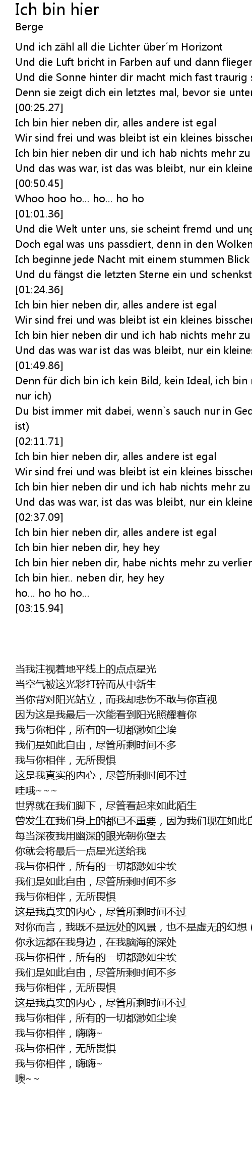 | [02:53.36] | Ich bin hier neben dir, hey hey |