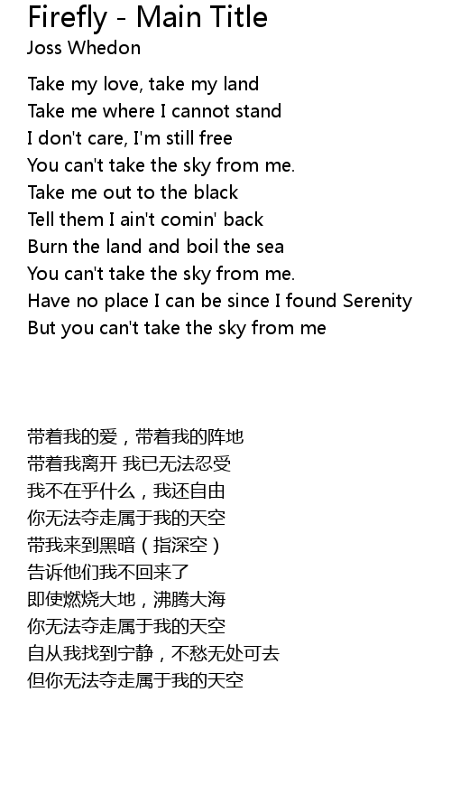 | [00:43.050] | 但你无法夺走属于我的天空 |