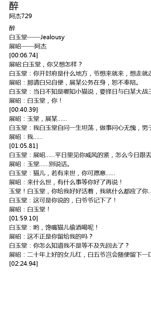 | [00:01.16] | 白玉堂——Jealousy |