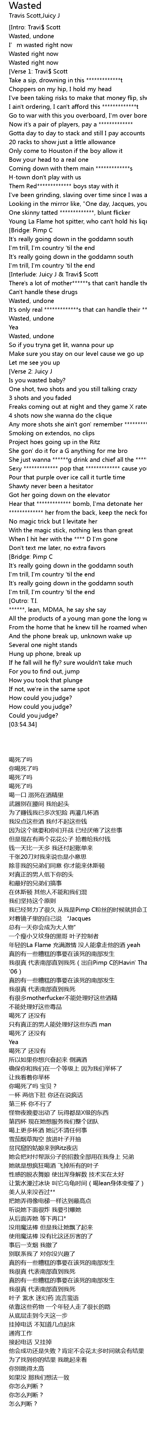 | [00:06.16] | I' m wasted right now |
