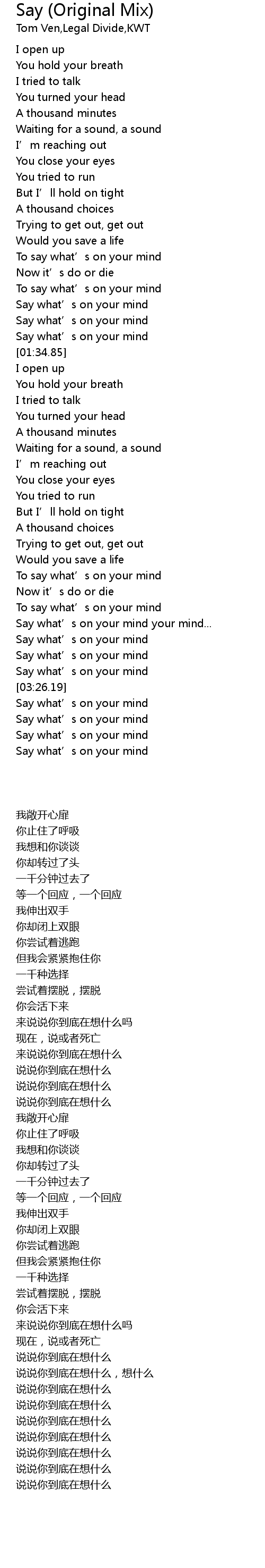 | [01:32.38] | Say what' s on your mind |